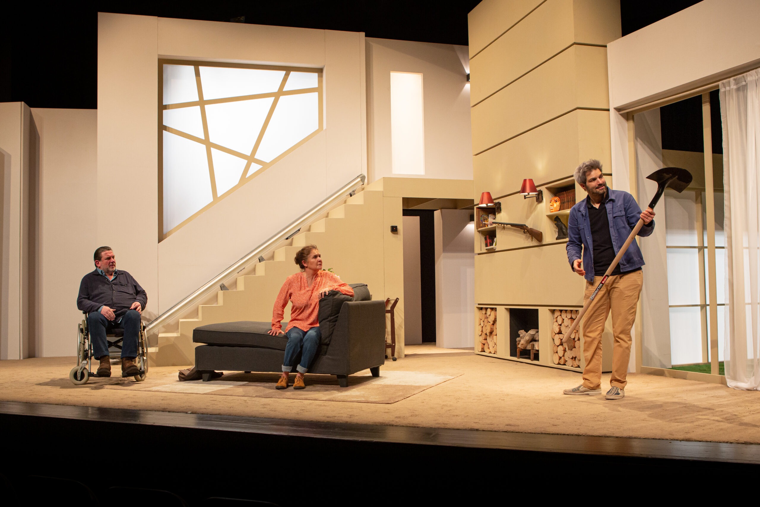 Si l’histoire tient si bien le public en haleine, c’est aussi parce que les quatre comédiens campent leur personnage à la perfection. Daniel Hanssens excelle en père de famille en chaise roulante, dévoré par l’angoisse et les soupçons. Face à lui, Clément Manuel est épatant en gendre dangereusement lunatique. Quant aux personnages mère – fille, leur flegme, qu’elles manient avec justesse, tranche avec l’omniprésente tension du récit.
