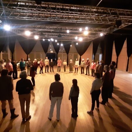 – improvisé sur le moment : pas de reprises de chansons mais différents jeux vocaux, circlesongs, improvisations collectives