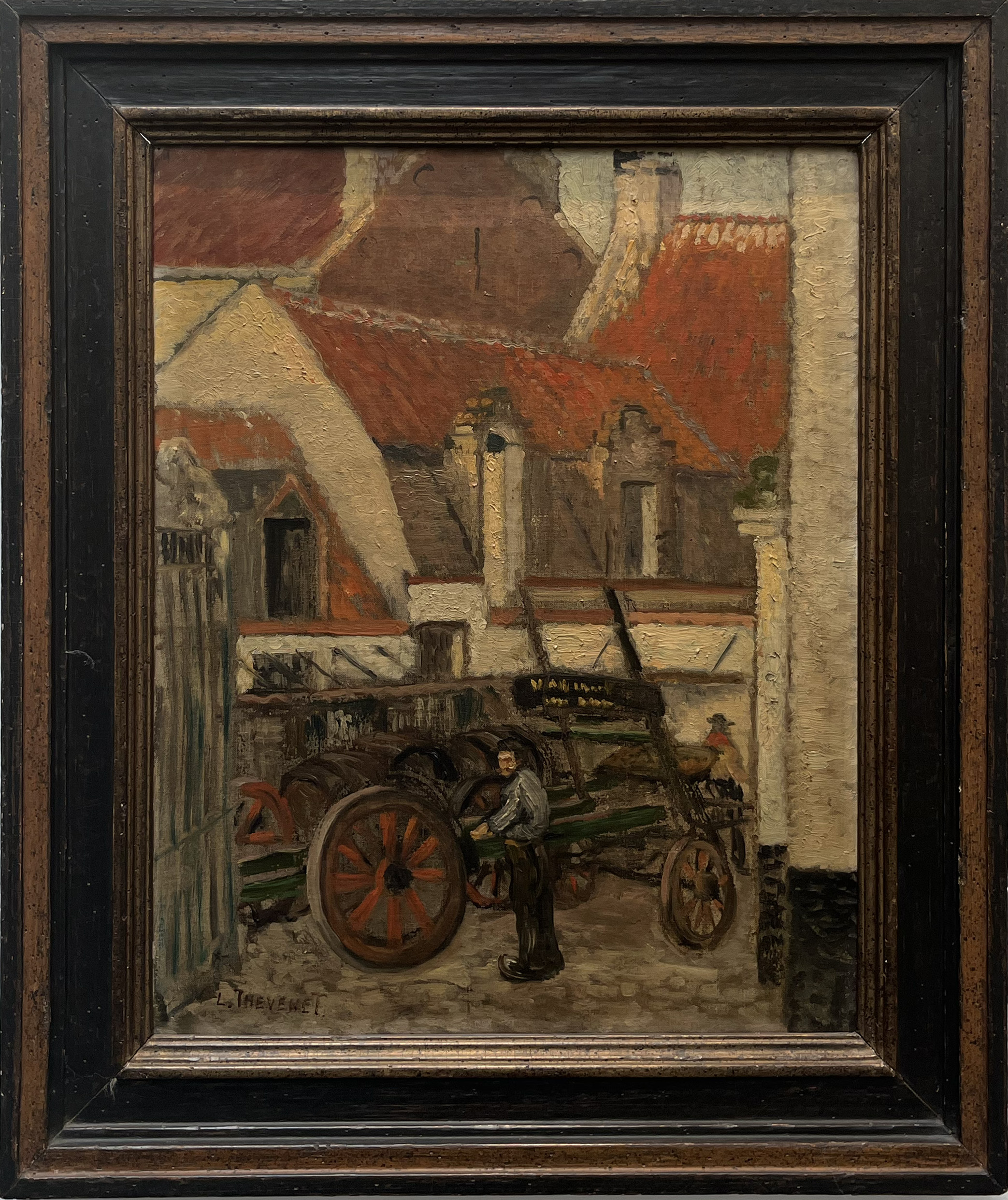 Quatrième enfant d’une famille de musiciens, Louis Thévenet voit le jour à Bruges, le 12 février 1874, mais il passe la majeure partie de son enfance à Bruxelles, où son père est organiste à l’église Saint-Jacques-sur-Coudenberg. Initié à la peinture par son frère ainé, Pierre, Louis achève sa formation artistique auprès du peintre et graveur Auguste Oleffe.