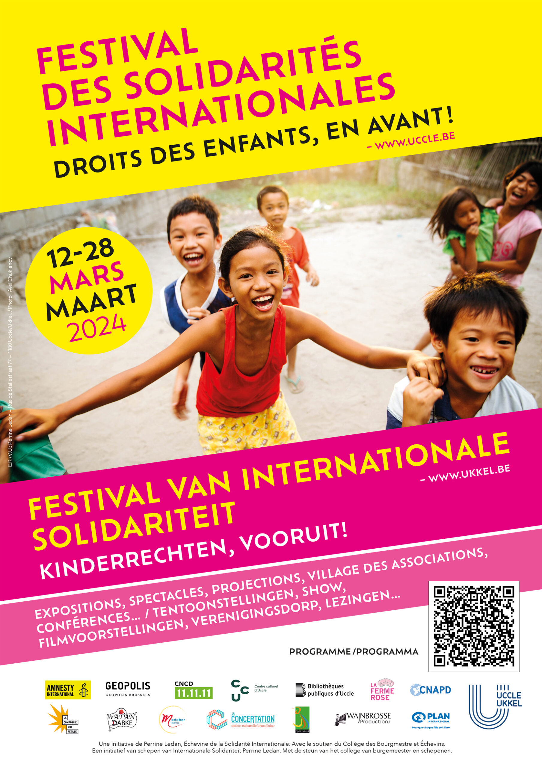 Cette année, le Festival se dédie aux droits des enfants. En partenariat avec plusieurs associations dont Amnesty international, de nombreuses thématiques sont abordées : droit à l’éducation, droit à la dignité et à la protection, travail forcé… À travers des expositions, conférences, spectacles, projections de films et animations, le grand public et les écoles auront l’occasion de découvrir toutes ces dimensions. Des moments joyeux et festifs sont aussi prévus pendant cette quinzaine qui se déroule au Centre Culturel d’Uccle, dans les bibliothèques, à la Ferme Rose, au Centre administratif d’Uccle et dans l’espace public. Toutes les activités sont gratuites.