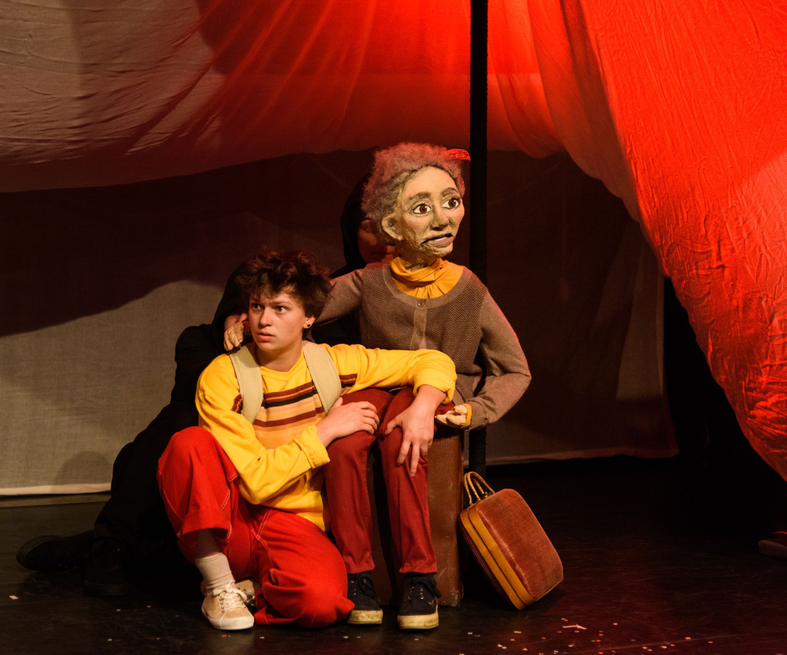Un voyage surréaliste, une enquête à la recherche d’un papy disparu, une rencontre entre une grand-mère déboussolée et sa petite-fille déterminée, une traversée folle de la mer à l’Ardenne en passant par Bruxelles, des comédien·ne·s, du cirque, du théâtre d’ombres, des marionnettes à taille humaine, un décor mouvant, des vidéos baladeuses, des tableaux surréalistes, de quoi se régaler avec le cœur et les yeux… “