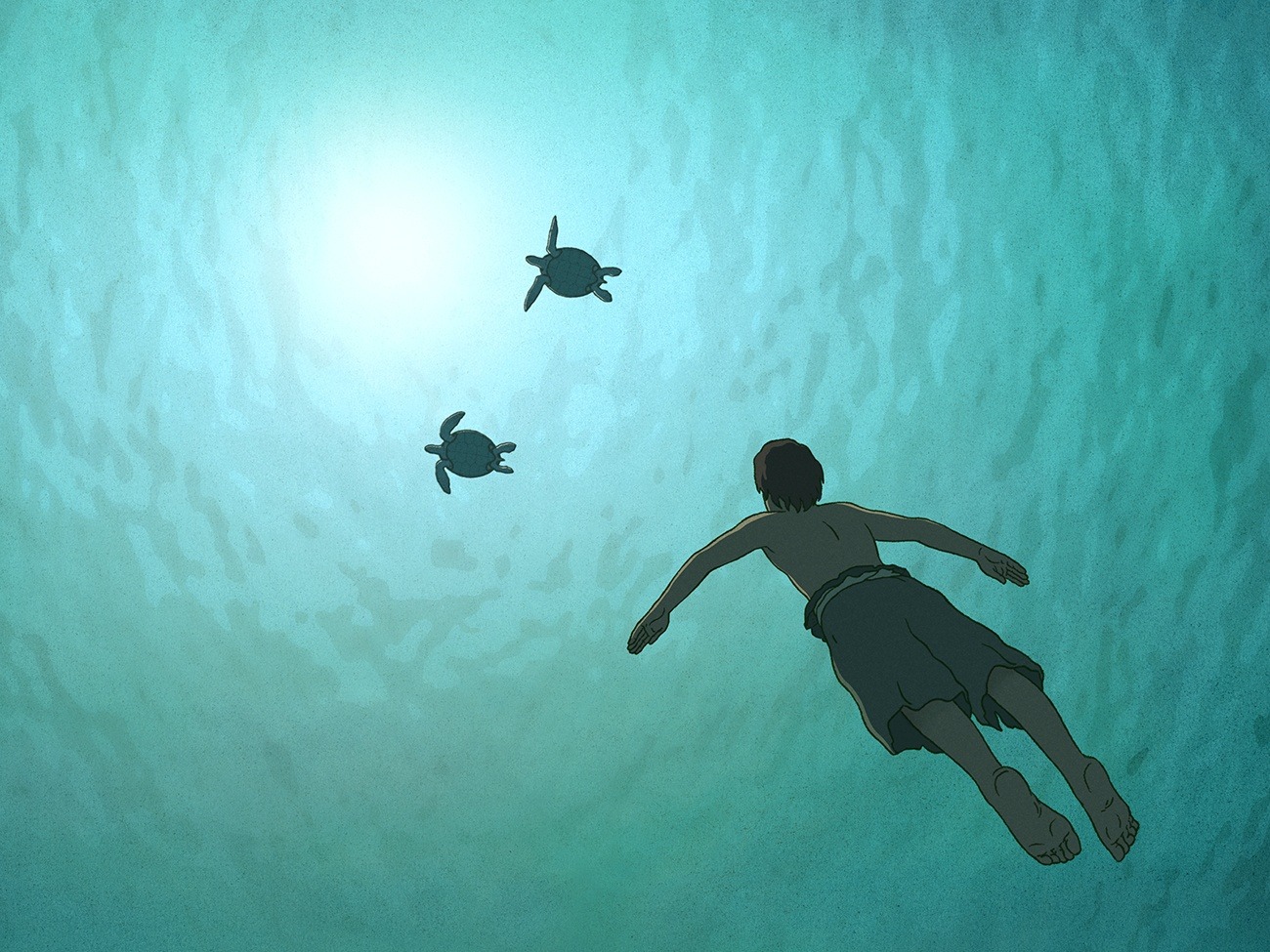 À travers l’histoire d’un naufragé sur une île déserte tropicale peuplée de tortues, de crabes et d’oiseaux, La Tortue rouge raconte les grandes étapes de la vie d’un être humain.