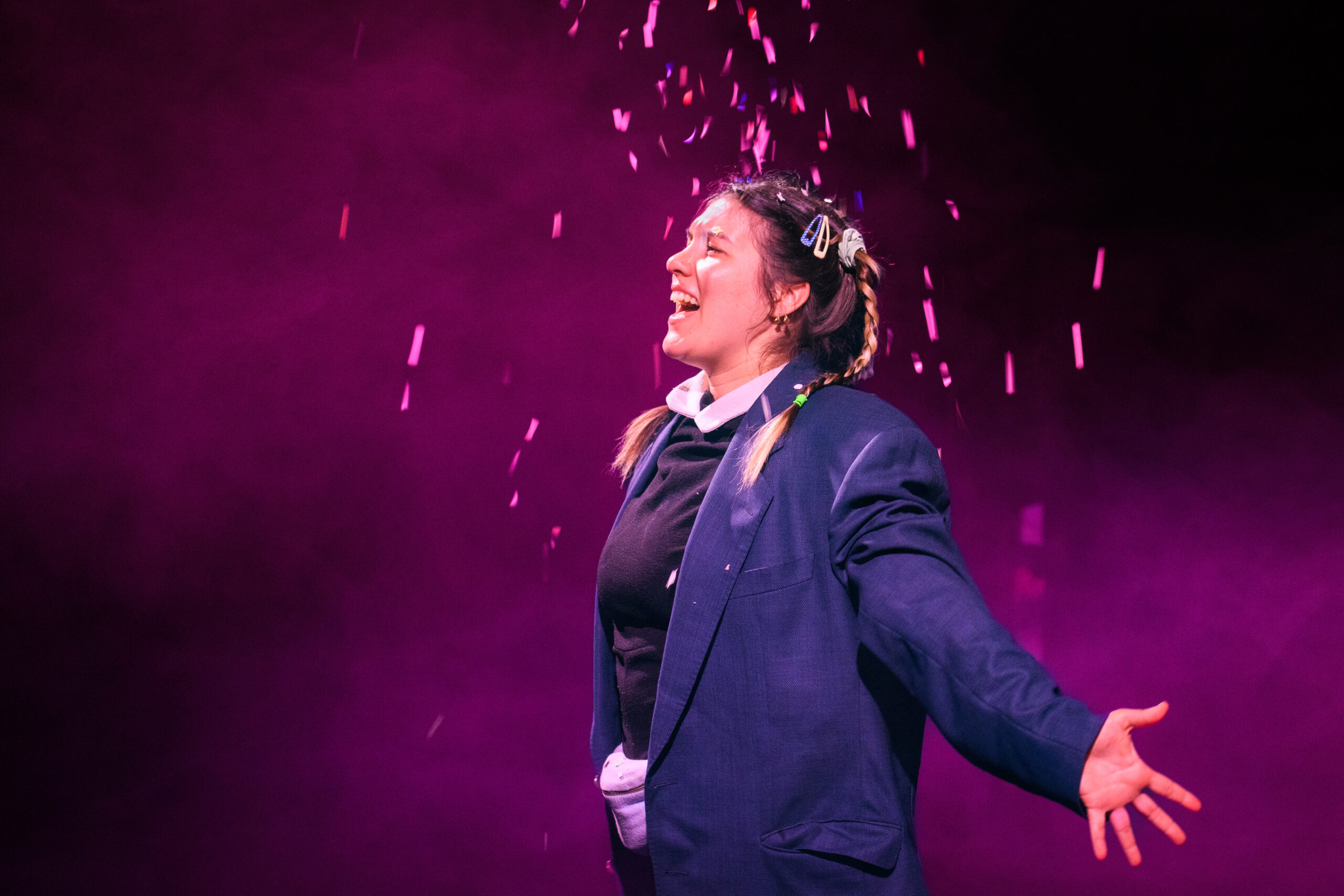 Violette, punie par sa mère et envoyée au grenier, entreprend d’écrire à son grand père parti sur la lune une lettre pour l’informer. Toutes les émotions et interrogations qui font son quotidien déferlent en désordre. Où on va quand on est mort ? Comment on gère deux amoureux ? C’est quoi le contrôle fiscal ? Est-ce que tout le monde peut devenir une sirène ? Entre humour et enfance, elle donne vie aux objets qui l’entourent et réinvente le monde à sa façon. Elle pulvérise le quatrième mur pour embarquer le public avec spontanéité et audace dans son imaginaire bouillonnant.