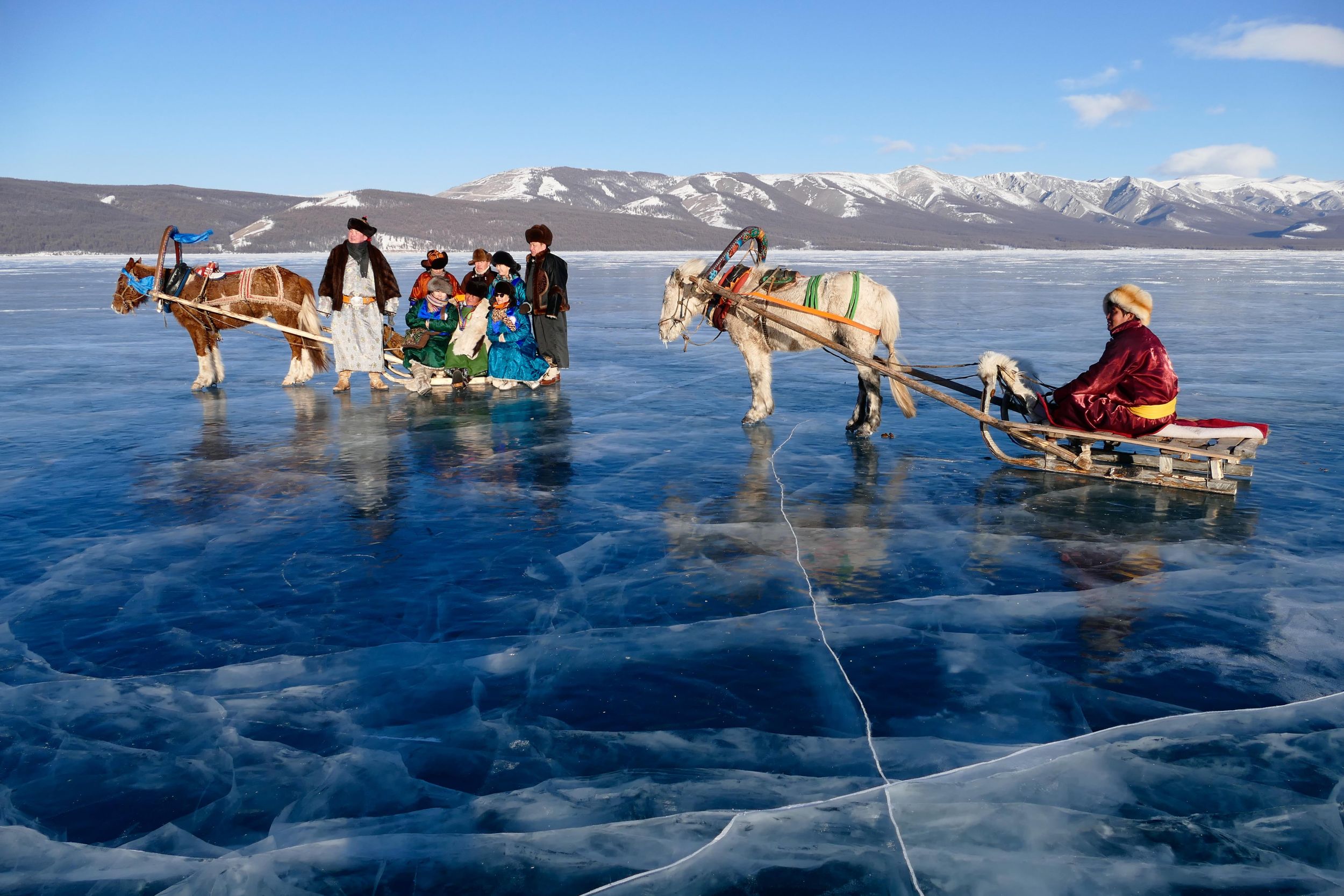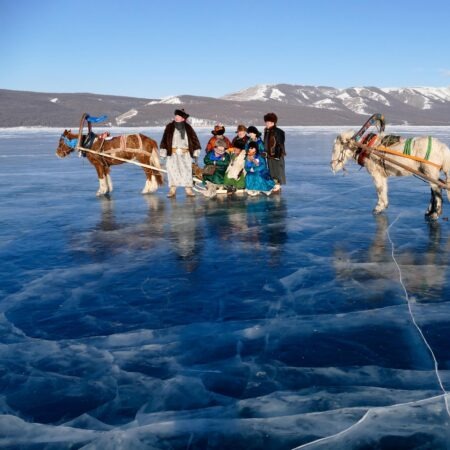 Au nord-ouest de la Sibérie, dans la péninsule du Yamal, vivent les Nenets, peuple nomade éleveurs de rennes. Depuis des siècles, ils suivent leurs troupeaux du sud vers le nord, puis du nord vers le sud suivant les saisons. Aujourd’hui encore leurs coutumes ancestrales perdurent malgré le géant Gazprom, le réchauffement, les jeunes qui ne reviennent pas forcément dans la toundra après leur scolarité et le manque de femmes qui se fait déjà sentir… Il faut être fort pour être Nenets, mais ils aiment se dire : “tant qu’il y aura des rennes, il y aura des Nenets… L’auteur se dirige ensuite vers le nord de la Mongolie, à la frontière sibérienne, terre chamanique par excellence où il y rencontre le peuple Tsaatan. Puis sur le lac Khövsgol gelé, perle bleue de la Mongolie, il nous fait découvrir le festival de glace qui réunit toutes les minorités environnantes. Un véritable caléidoscope de costumes, de couleurs et de jeux. Il poursuit son périple vers l’Altaï mongol pour une immersion chez les kazakhs, à la rencontre des éleveurs de yack et des aigliers !