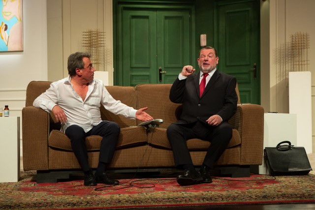 Comment écrire, sans les offenser, que Daniel Hanssens est un con mémorable et que Pierre Pigeolet fait totalement illusion en salaud ? Espérons que les deux comédiens – ici dans de purs rôles de composition, évidemment ! – ne prendront pas la mouche si on s’extasie devant leur talent à endosser les deux personnages cultes du Dîner de cons, increvable pièce de Francis Weber.